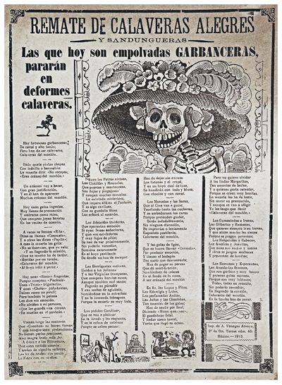 “Those garbanceras who today are coated with makeup will end up as deformed skulls.” — Traditional saying inspired by Posada’s etching