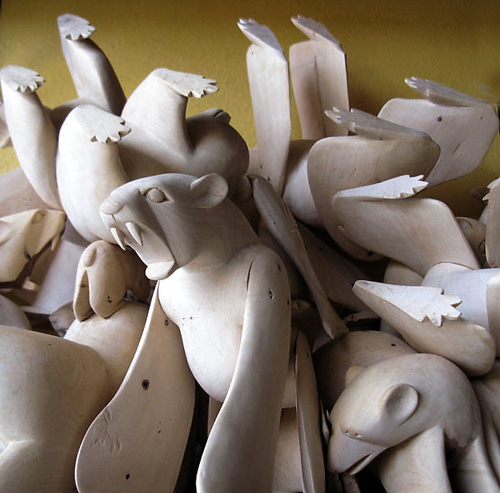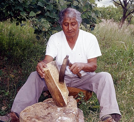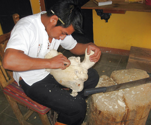 Once the wood is selected, it must be carved quickly before it dries and hardens. Using machetes, pocket knives, and simple blades, the artisan roughs out the basic form in a single session.