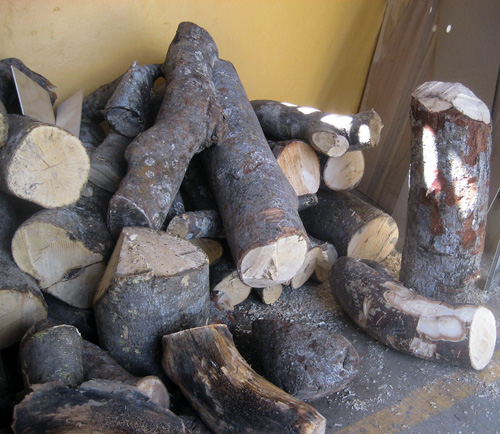 Workshops often consist of an open courtyard shaded by a tree, a table scattered with knives, and a pile of wood waiting to be transformed.
