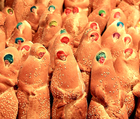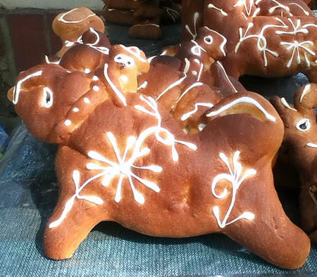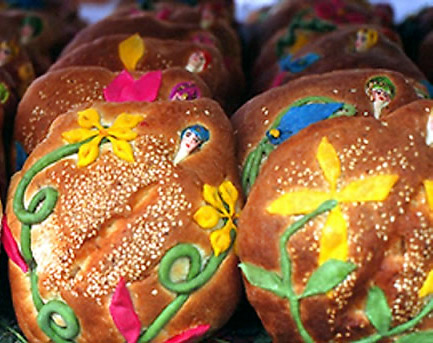Here, the bread is shaped into human figures, animals, or flowers, often painted with bright icing or sprinkled with seeds. These breads are deeply personal, they are named after the departed and sometimes placed on the grave itself during nighttime vigils.