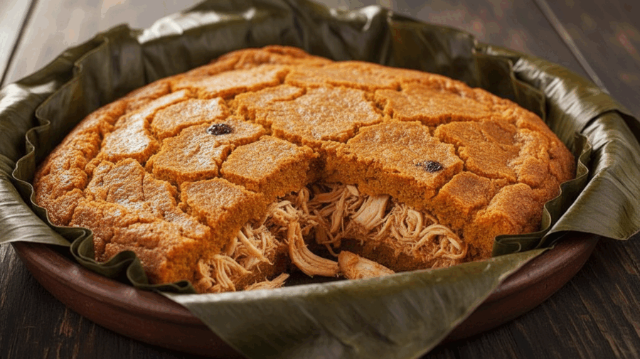 In the Yucatán Peninsula, the offering bread is called Mucbipollo or Pib. It is not a sweet bread but a large, savory tamal made with corn dough, chicken, and spices, wrapped in banana leaves and cooked underground. This ancient Maya dish connects the Day of the Dead to the pre-Hispanic belief in the cyclical nature of life and the earth as a womb that both gives and receives.
