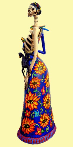 Day of the Dead (Día de Muertos): skeletons, skulls, and La Catrina, often inspired by José Guadalupe Posada’s engravings.