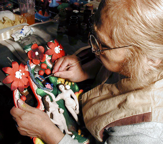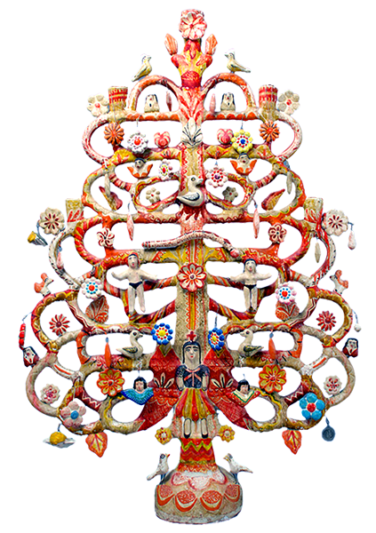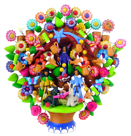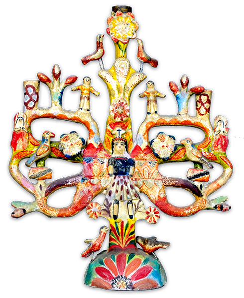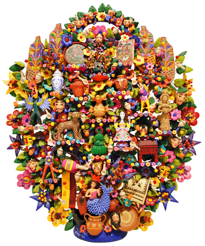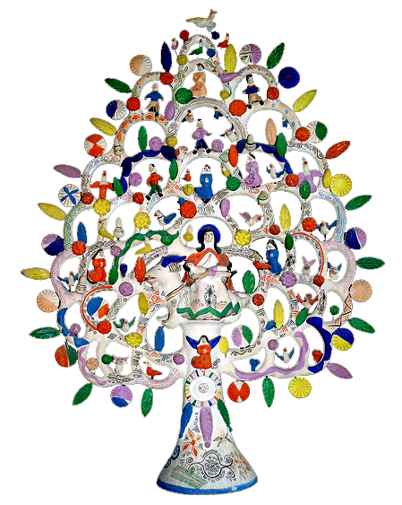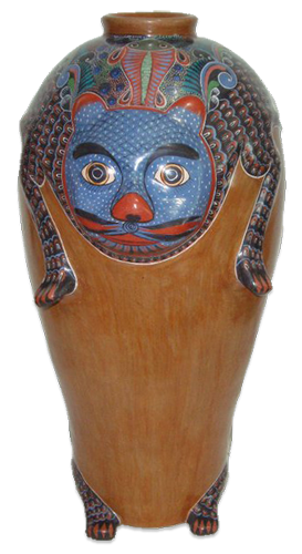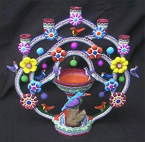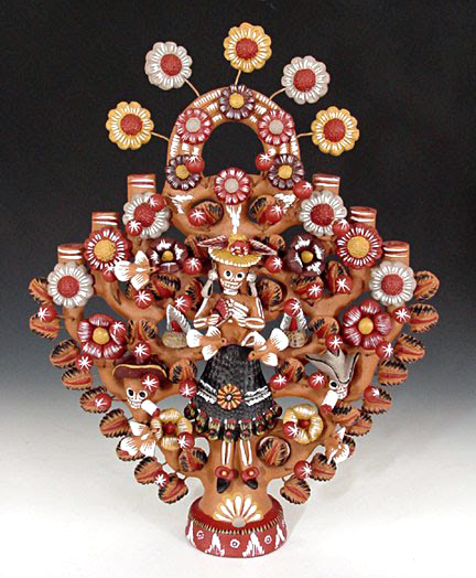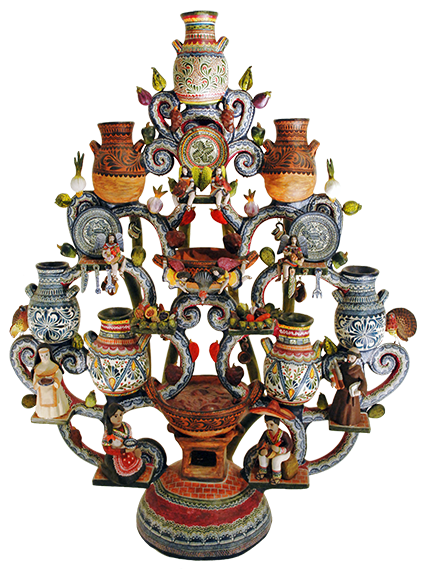 This pottery style is famous for its vibrant hues and intricate decoration that resembles painted filigree. The best-known creations include the Tree of Life, candelabra, incense burners, and whimsical Day of the Dead figures filled with humor and devotion.