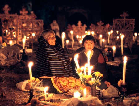 Perhaps the most intimate form of Day of the Dead folk art is the nicho, small dioramas crafted from tin, wood, or glass.