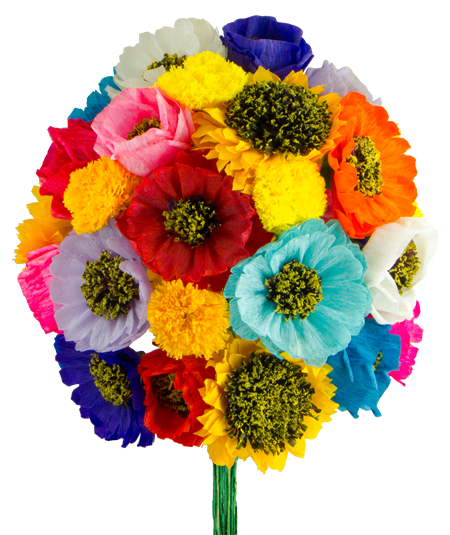 • Cempasúchil paper flowers, their orange and yellow petals symbolizing the sun’s light that guides the spirits home.