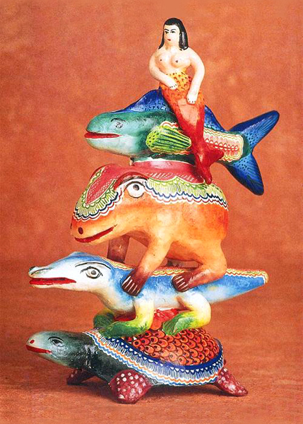 Shown: “Mariachi” figure by Pedro Linares.