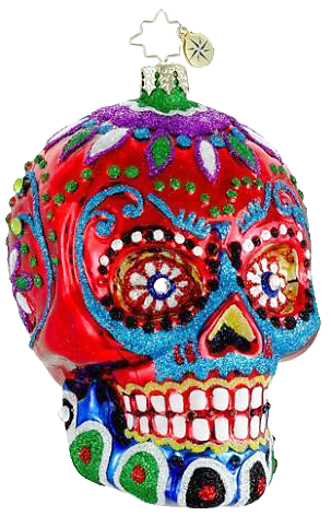 Shown: Glass Christmas ornament inspired by Día de Muertos.