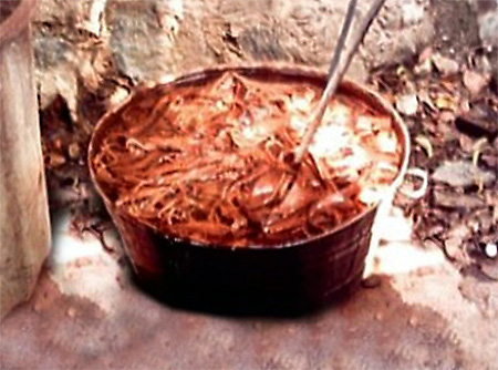 • Boiling the bark: Strips of bark are boiled for hours with ashes or lime to soften the fibers.