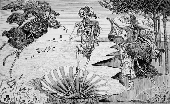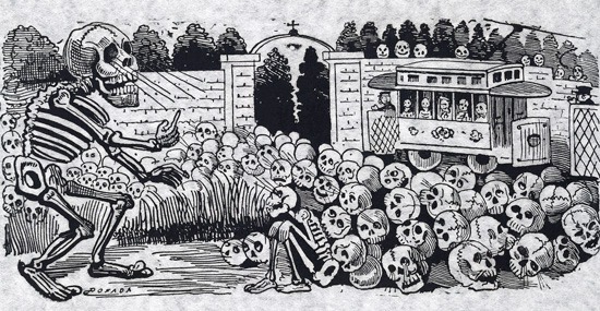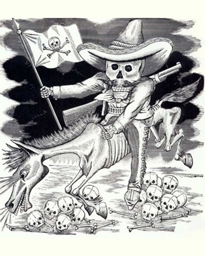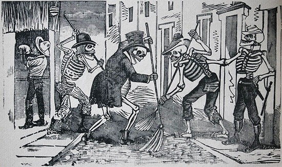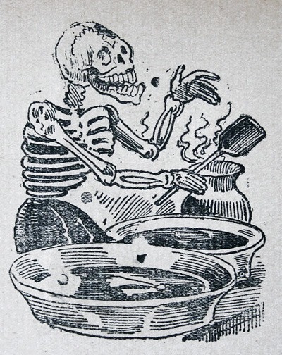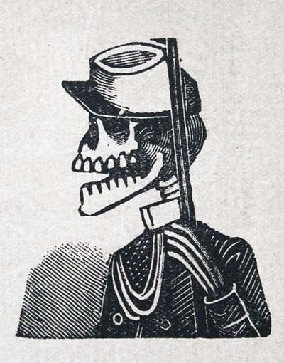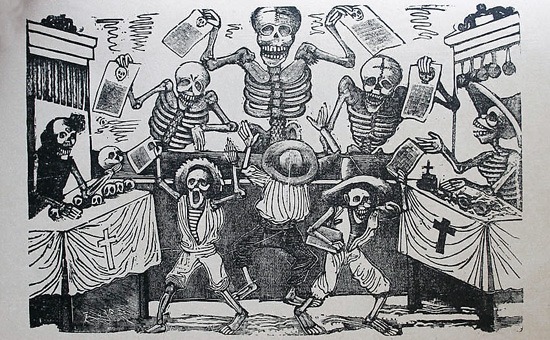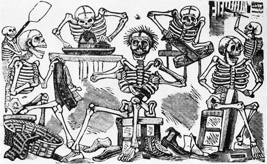 Together with Vanegas Arroyo and poet Constancio Suárez, Posada produced the calaveras literarias: short satirical poems about public figures, accompanied by his humorous skeleton illustrations.